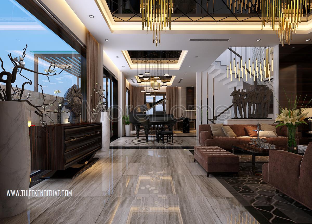 Không gian phòng khách sang trọng, hiện đại của một biệt thự đơn lập.
