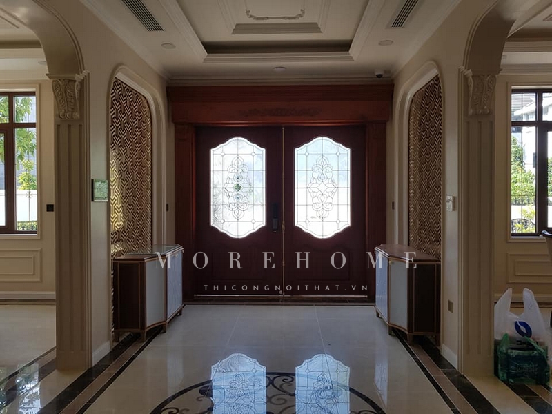 Cửa chính 2 cánh gỗ tự nhiên tân cổ điển 2 cánh thuận tiện, dễ sử dụng và tạo cảm giác sang trọng cho không gian