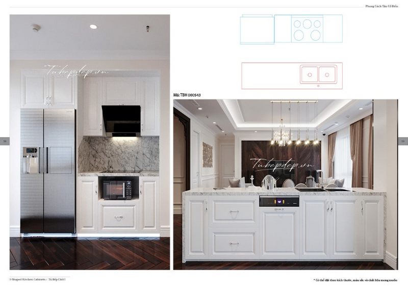 Chiêm ngưỡng mẫu nội thất dành cho phòng bếp cao cấp với thiết kế màu trắng trẻ trung và sang trọng từ phong cách tân cổ điển giản lược.