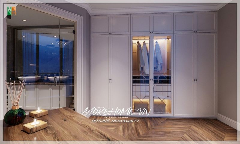 Tủ quần áo kịch trần gỗ tự nhiên sơn trắng kết hợp cánh kính phong cách đương đại sang trọng sẽ là lựa chọn tuyệt vời cho các căn hộ, nhà phố, biệt thự.