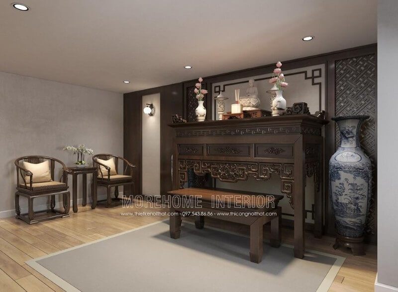 Mẫu bàn thờ gỗ tự nhiên này được thiết kế với họa tiết không quá phức tạp, tạo nên một vẻ tôn nghiêm riêng.